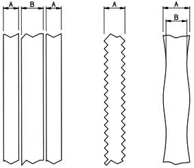 Наша технология позволит вам получать широкую гамму форм, как, например, зубчатую (типа реджинетте), которая достигается при помощи матрицы (см. центральный рисунок сверху). Вы можете также получать варьируемую и волнообразную форму (см. правый и левый рисунок сверху).